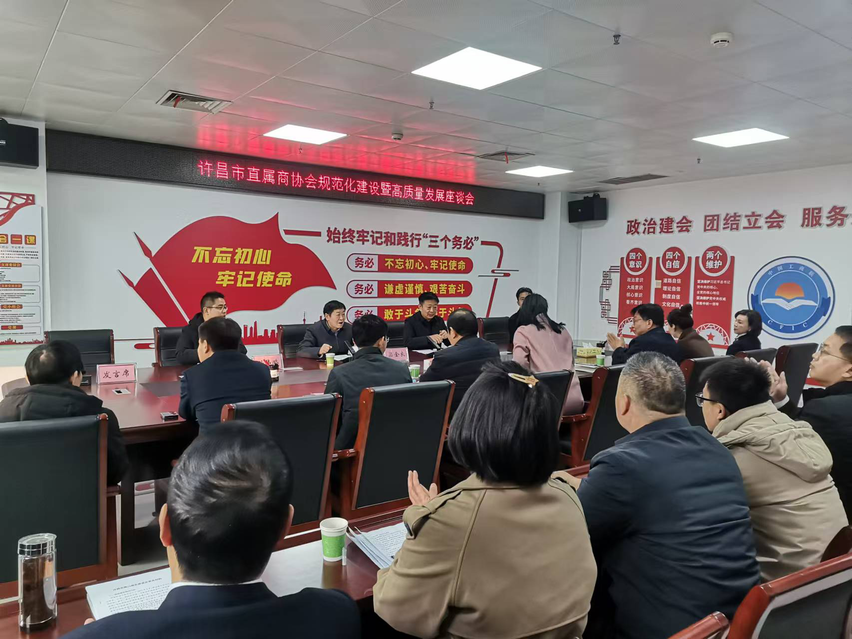 12月12日,许昌市工商联联合市民政局组织召开直属商协会规范化建设暨高质量发展座谈会。市民政局党组成员、副局长时少伟,市工商联三级调研员梁金良,市民政局社会组织管理和慈善事业促进科科长孙伟鹏,市工商联组宣部部长王奕翔,市工商联直属各商协会会长、秘书长参加座谈。