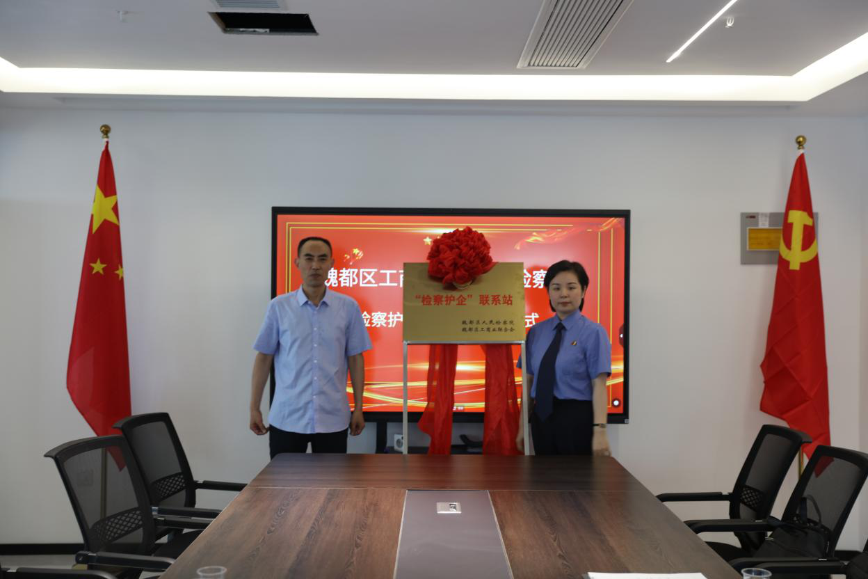 5月30日,许昌市魏都区工商联与区检察院举行“检察护企”联系站揭牌仪式暨民营企业家座谈会。区委统战部副部长、区工商联党组书记郑晓伟,区检察院党组成员、副检察长王东芳出席活动并为“检察护企”联系站揭牌。区工商联、检察院相关人员及部分民营企业家代表参加活动。