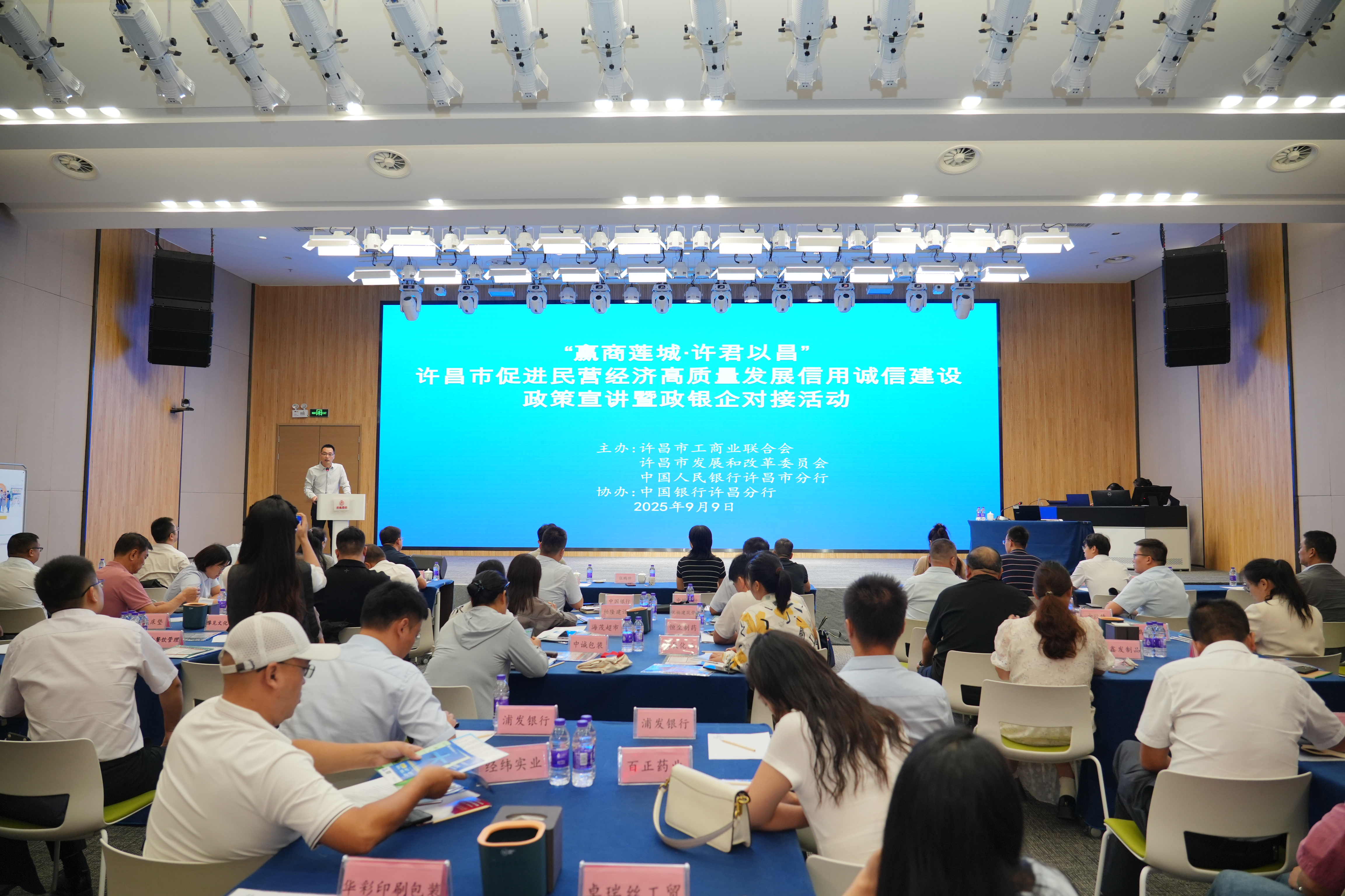 9月9日,许昌市工商联联合市发改委、人民银行许昌市分行举办“赢商莲城·许君以昌”促进民营经济高质量发展信用诚信建设政策宣讲暨政银企对接活动,推动信用政策精准直达,助力民营企业破解融资难题。市工商联党组成员、秘书长张鹏帅,人民银行许昌市分行党委委员、副行长刘旭鹏,市发改委、人民银行许昌分行、市工商联等相关业务负责同志,市区15家银行机构普惠金融部门负责人及信贷骨干,以及全市90余位民营企业代表参加活动。