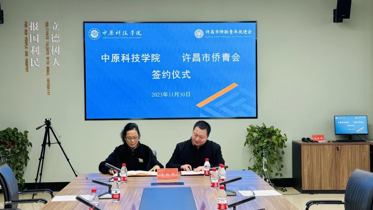 座谈会上,杨新新向调研组介绍了中原科技学院的办学理念、建设历程和远景规划,双方就整合资源和开展校地合作进行深入探讨,现场签署了战略合作协议,在信息共享、资源对接、品牌合作、宣传推广等方面积极开展合作,为学校发展和许昌经济社会发展贡献侨青力量。