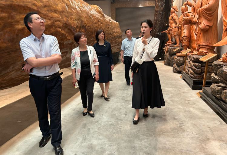 买自强一行参观了金丝楠博物馆、云龙纹立柜等展厅。博物馆工作人员依次介绍了金丝楠博物馆的发展历程及金丝楠文化传承发展等方面情况,重点参观了依据曹魏文化,用世界上最大的原木为载体雕刻而成的巨作——烽烟三国。大家纷纷表示,在这里体验到了源远流长的金丝楠文化。