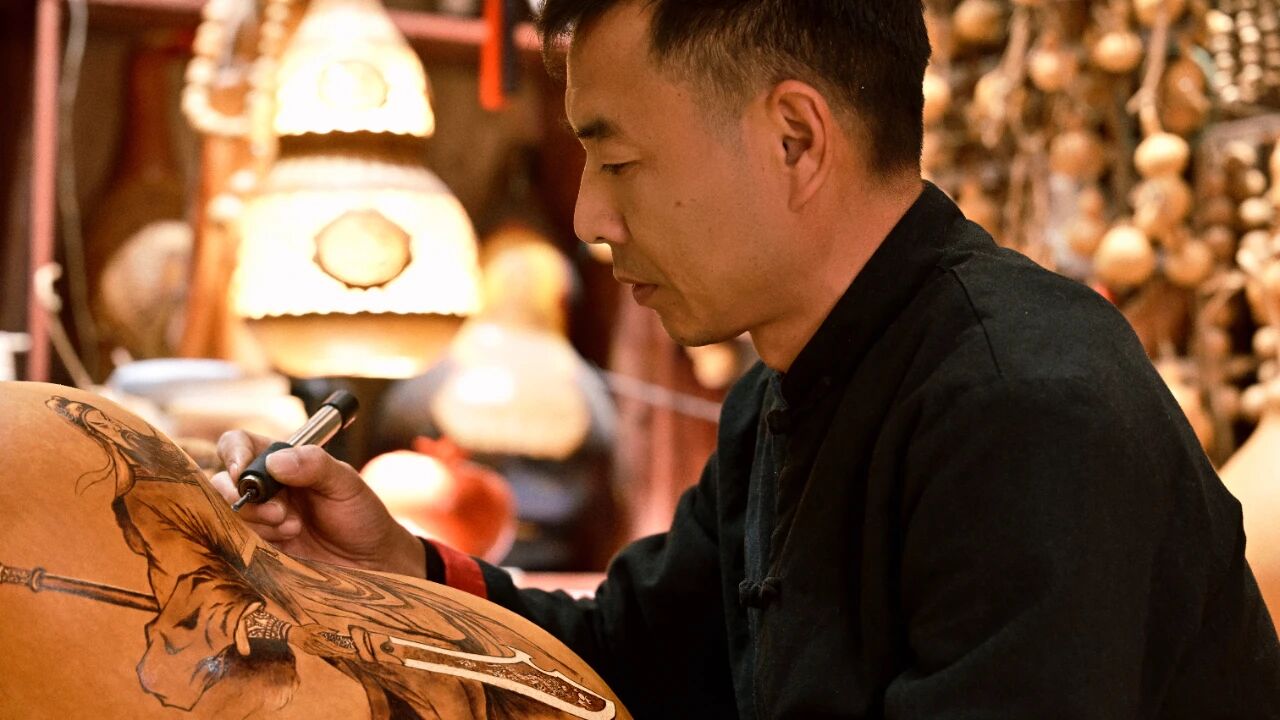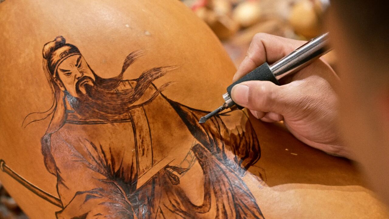 许昌的传统葫芦烙画源于清代光绪年间,代代相传,到现在已有五代传承。该项目的市级非遗代表性传承人刘小培在严格遵守父辈们制作技艺和手法的同时,把传统的烙画技艺与雕刻,镂空相结合,他创作的葫芦烙画更加有美感、有质感与立体感,层次表现力非常丰富。