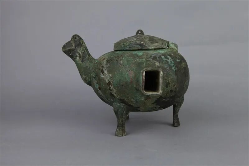 秦汉之际,盉的用途得到了进一步提升,由以前的调、温酒功能俨然变成了一种煮酒器。这时提梁变成了侧装中空的把握,还可以加装木柄,三足依然存在。