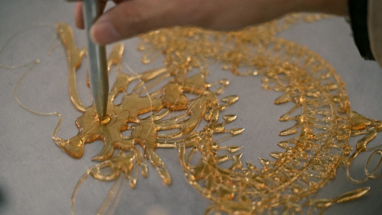 糖画是一项兼具雕塑和绘画的传统民间手工技艺,具有独特的艺术感染力,是中华民族古老审美意识的集中表现。目前,这种普通百姓喜闻乐见的民间传统艺术,依然活跃在中原大地上,向世人展示着其独特的传统文化魅力。